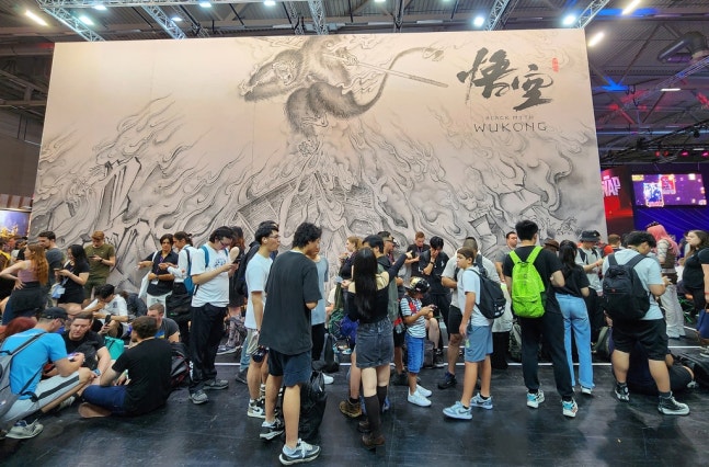 (쾰른=연합뉴스) 김주환 기자 = 중국 게임사 '게임 사이언스'가 25일(현지 시간) 독일 쾰른에서 '게임스컴 2023' 현장에 설치한 신작 게임 '블랙 미스: 오공' 체험 부스가 관람객으로 붐비고 있다. 2023.8.25 jujuk@yna.co.kr팬덤 거느린 중국 게임 부스에 관람객 '장사진'코로나19 사태 이후 개발 역량이 눈에 띄게 높아진 중국 게임들의 약진도 돋보였다.B2C(기업-소비자 거래) 전시장이 열린 첫날인 지난 24일, 중국 게임사 '게임 사이언스'의 신작 게임 '블랙 미스: 오공' 시연 부스는 한때 3시간 넘는 체험 대기 줄이 생기는 기염을 토했다.그간 해외에서 별도의 브랜드명을 사용해 '중국산'이라는 사실을 최대한 감추려고 노력한 다른 기업들과 달리, '게임 사이언스'는 기업 로고와 게임 홍보 영상에서 중국 게임임을 여지없이 드러냈다.'블랙 미스: 오공'은 개막식 트레일러에서 압도적인 그래픽과 연출로 플레이어들의 호평을 받으며 '게임스컴 어워드'에서 '최고의 시각 효과' 상을 받았다.'원신'·'붕괴: 스타레일' 제작사로 유명한 중국 게임사 호요버스에서 나눠 준 대형 쇼핑백을 들고 다니는 관람객도 자주 눈에 띄었다.호요버스는 부스에 커다란 무대를 설치하고 게임 음악과 코스프레 공연을 펼쳤는데, 행사 때마다 팬들의 함성으로 공연장이 시끌벅적해졌다.접이식 의자를 들고 와 '오공' 부스 앞에 줄을 선 뮌헨 출신의 르네 콜로첵(25) 씨는 "트레일러를 보니 정말 장래가 기대되는 게임이라 꼭 해 보려고 왔다"며 "3개월쯤 전까지는 '원신'을 즐겨 했는데, 돈을 많이 쓰도록 유도하는 게 단점이긴 했지만, 그만큼의 재미를 주는 게임이었다"고 말했다.텐센트와 넷이즈의 신작 게임 부스 역시 '오공'만큼은 아니지만, 20∼30분 이상은 기다려야 시연 기회가 돌아올 정도로 인기가 많았다.높은 기술력과 콘텐츠 기획 능력으로 지구 반대편 게이머까지 열성 팬으로 만든 중국 게임의 급부상은 아직도 내수 시장에 호소하는 다중접속역할수행게임(MMORPG)이 대세인 한국 게임 업계에 던지는 시사점이 커 보였다.호요버스 부스에 몰린 관람객들